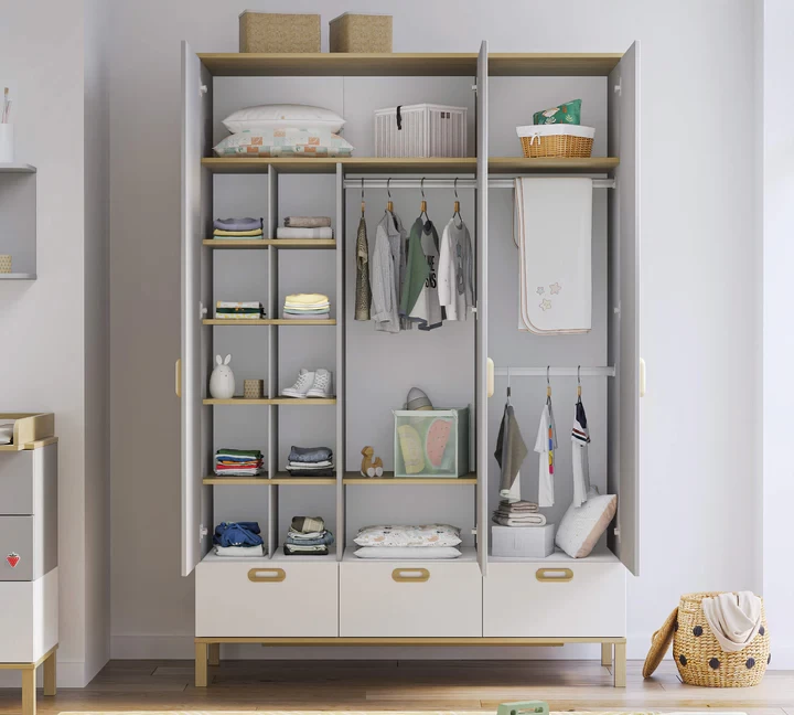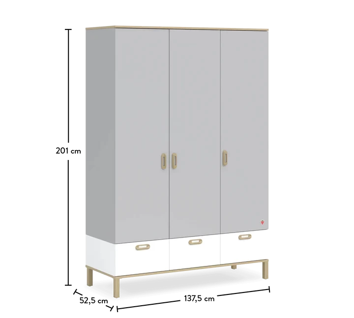 There are so many people who share the excitement of your baby with you. Lots of excitement; plenty of gifts, which also means plenty of storage space needs. Mino Baby 3 Doors Wardrobe offers a wide range of solutions consisting of 3 hangers, plenty of shelves and 3 drawers so that all his needs are in his room and always close by.